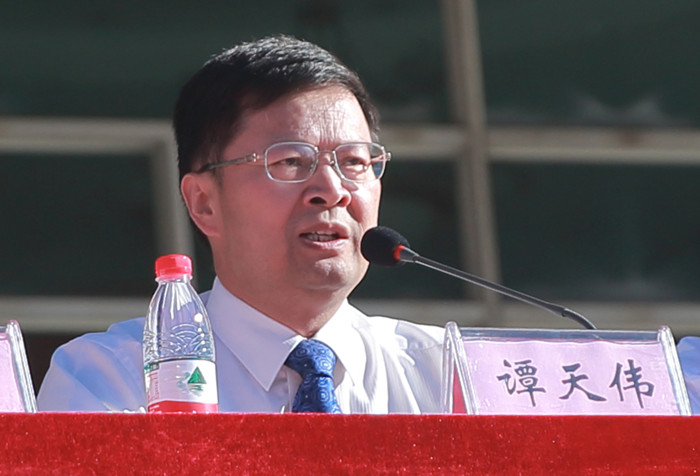 校长谭天伟致辞,他向2016级全体新生表示热烈欢迎,向新生家长致以诚挚的问候和衷心的感谢。在致辞中,谭天伟校长介绍了学校的发展历程、学科发展情况及科研情况。接着,他引用《大学》的“大学之道,在明明德,在亲民,在止于至善”阐述了大学的意义,提出大学教育是“使学生成为人格健全、个性和谐的人”。同时,他对全体16级新生提出三点殷切希望:一是坚持独立思考、勇于开拓创新;二是学会与人相处,在合作中成长;三是培养“人文精神”与“科学精神”,做到知行合一。最后,谭天伟校长希望大家在大学期间积累扎实的专业知识,培养自身的人文素养,全面提升自己的综合素质,坚持“知行合一”,在北京化工大学度过一个精彩且无悔的大学时光。